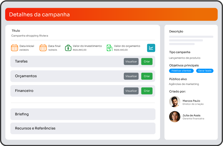Agora o JobbLive conta com um novo fluxo de abertura de campanhas e projetos, especialmente desenvolvido para agências que precisam centralizar todas as informações relevantes de uma campanha ou projeto em um só lugar.